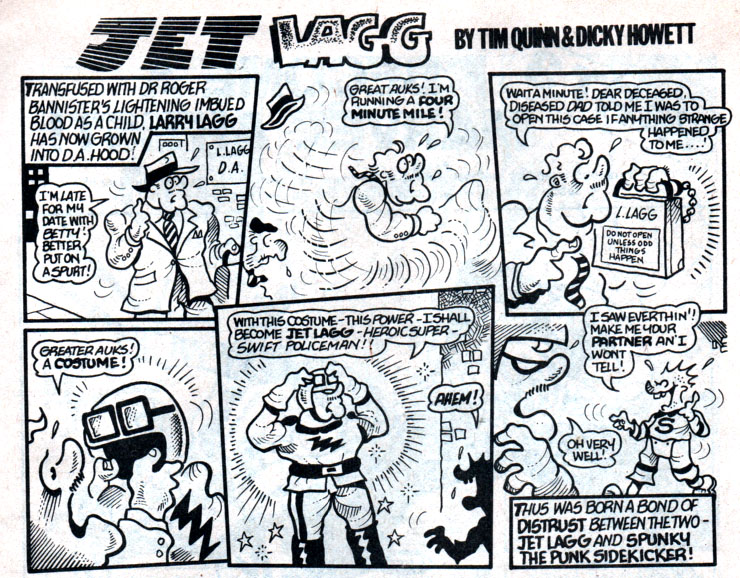 It’s forgotten Marvel UK hero Jet Lagg and not forgetting Spunky the Punk Sidekick. From Tim Quinn and Dicky Howett. This one from Super Spider-Man TV Comic 452. Bit of a typo but we’ve all made that mistake.