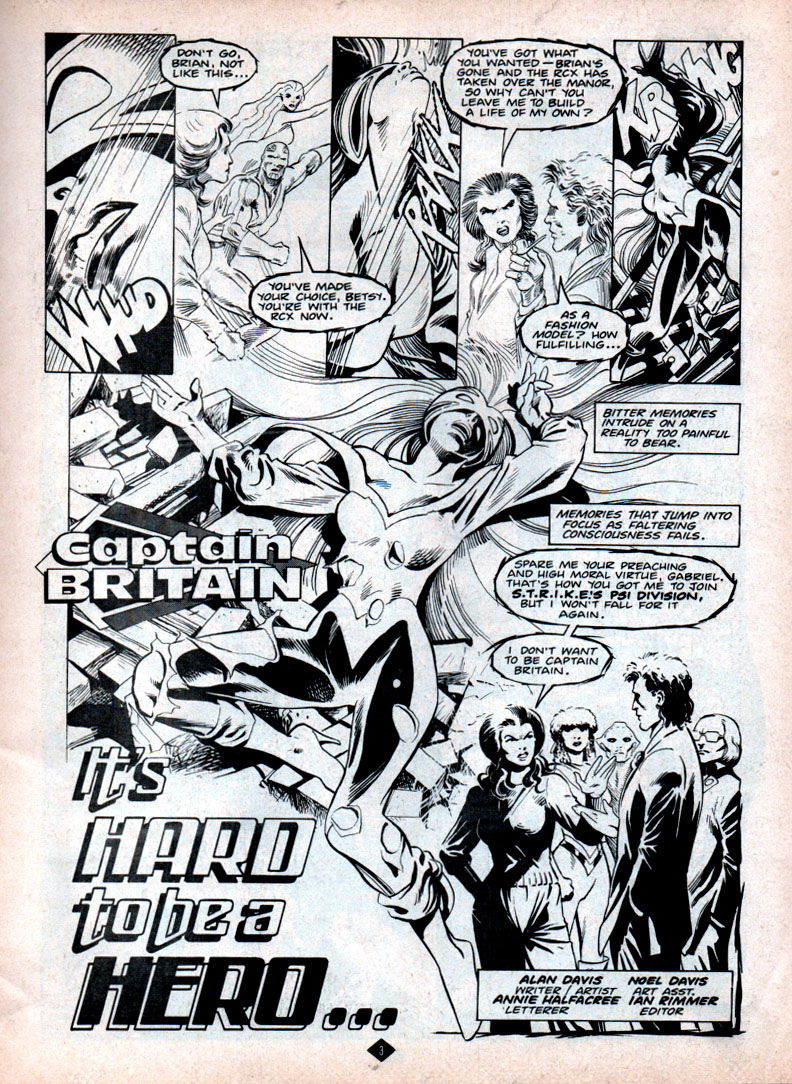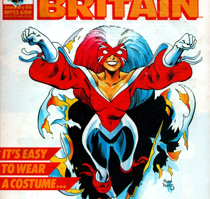 But of course this is a return to the mantle of Captain Britain for Betsy. She first donned the red, white and blue in the Marvel UK title Captain Britain issue 13 in January 1986. Written and drawn (magnificently as ever) by Alan Davis.