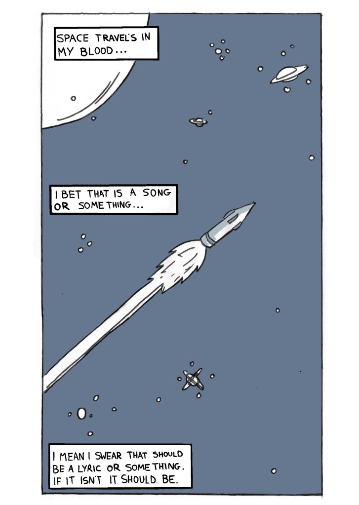 The storytelling in 50Signal is strong. Short comics like this only have a little time to set the scene and propel us into a story that is compelling, interesting and surprising. 50Signal manages to achieve this with charm and humour. It is full of surprises and twists whilst playing with the familiar imagery of rocket ships and planets.
