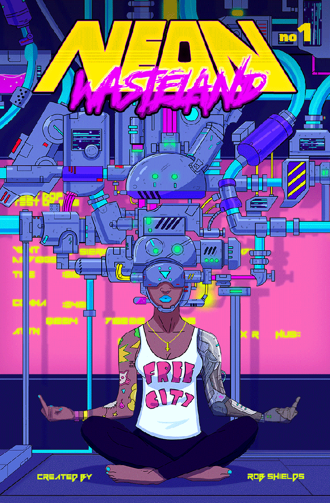 Neon Wasteland is an independent creator owned 5 Volume/ 10 issue miniseries written, animated and programmed by Rob Shields. Volume #1 is available for purchase at https://neonwastelandgame.com