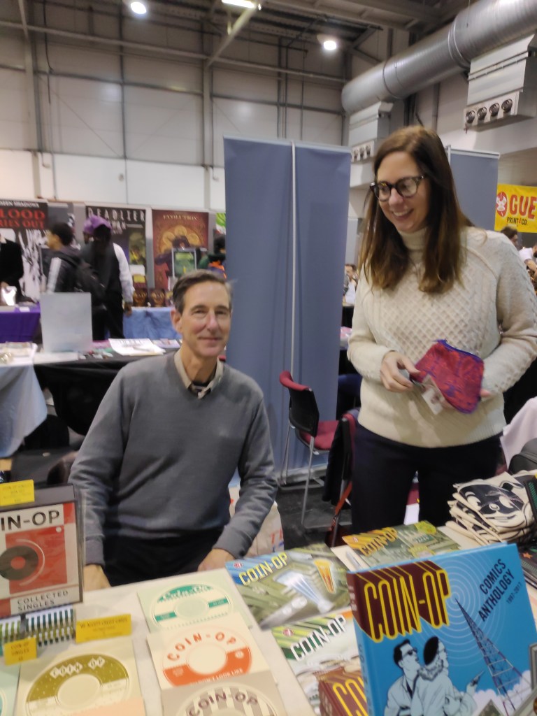 It was great to meet up with Una and have a quick chat. Una is an important voice in British comics who takes on subject matters that others just don’t touch. Becoming Unbecoming dealt with domestic violence and her latest self-published book On Sanity looks at the family and mental health. It is a hard-hitting work on an important topic. The writing style does not sensationalise and presents a situation that many find themselves in a straightforward way. The art style sees Una’s customary use of spare illustrations with colour carefully used to draw the eye.