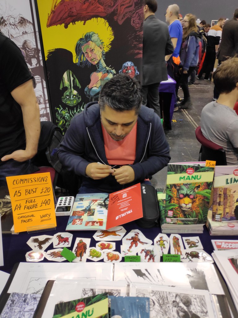 The other was from the amazing Gustaffo Vargas who blew my socks off with his Marvelman/Miracleman sketch. Gustaffo also had a new book – Manu – which I was very happy to pick up – from what I have read so far it seems wonderful. His artistic talent is one of the most outstanding in the UK small press scene and is matched by an ability to create amazing, unique and imaginative worlds. He has a bright future ahead of him, no doubt.