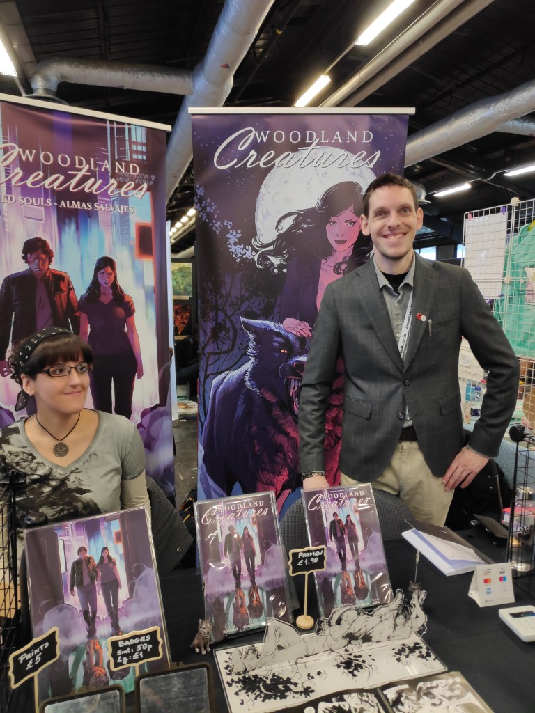 There were a few previews at the show including Woodland Creatures – a tale of bloodthirsty and occasionally lusty werewolves from Leith fantasy author Cristina Roswell with the creative team Fali Ruiz-Dávila and Tomás Aira. The preview sets up the tale nicely and has a professional look, if it can avoid genre cliches it should be a great read. There is a bar in Leith called Woodland Creatures and I am a bit scared to go there now.