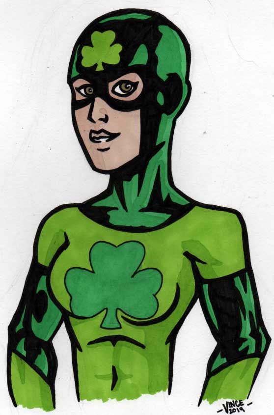 I got two fantastic commissions. One was from Vince Hunt and I went for my favourite obscure national stereotype Marvel heroine Shamrock. Old school Contest of Champions costume of course.