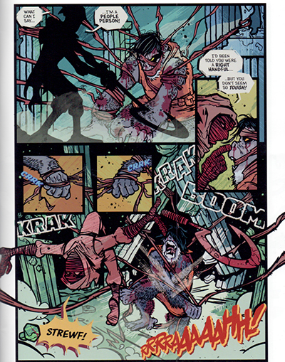 There are some very funny characters to be found in the pages of Silverbeard. I particularly enjoyed Choppy Bob the talkative ninja assassin (whose quick quips reminded me of Spidey) and who lurks the streets of the wonderfully named Aach-Garwarn. The letters page is also a treat.