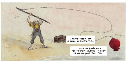 Fishing Memories is a thoughtful work dealing with Alzheimer’s disease. Lethe himself is named after the river of forgetfulness in the underworld realm of Hades. He slips between the island that his mind maroons him on and his new life in a facility where his loving family visit him. His brittle consciousness a fragile monument showering him with shards of glass.