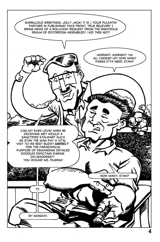 Other famous creators also appear alongside their personality foibles. Continuity-crazed Mark Evanier, landscape-lovin’ Gil Kane, Rand-readin’ Steve Ditko. It has the feel of one of those Marvel ‘roast’ comics where a lot of fun is poked but in a very affectionate way. Cracked and Mad magazines are a stated inspiration for Stan and Jack and I would add Fred Hembeck and also Tim Quinn and Dicky Howett’s Earth 33 ⅓ – a beloved staple of Marvel UK.