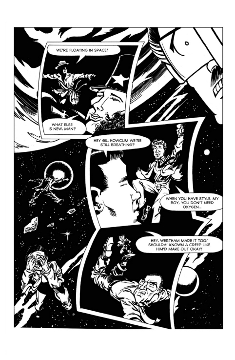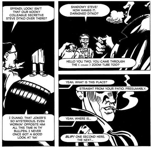 Stan and Jack takes that vision and turns it up a notch. What if those personalities had their own adventures. Adventures in a world shaped like their comics visions, a Kirby world full of crackling space energies, a Ditko world of shadowy mystery and eldritch forces? All driven by Stan Lee of course.